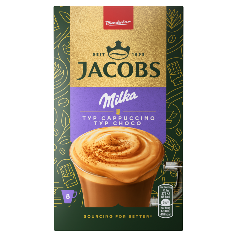 Jacobs Milka csokoládéízű azonnal oldódó kávé- és kakaóitalpor 8 x 15,8 g (126,4 g)